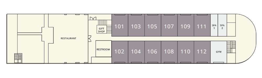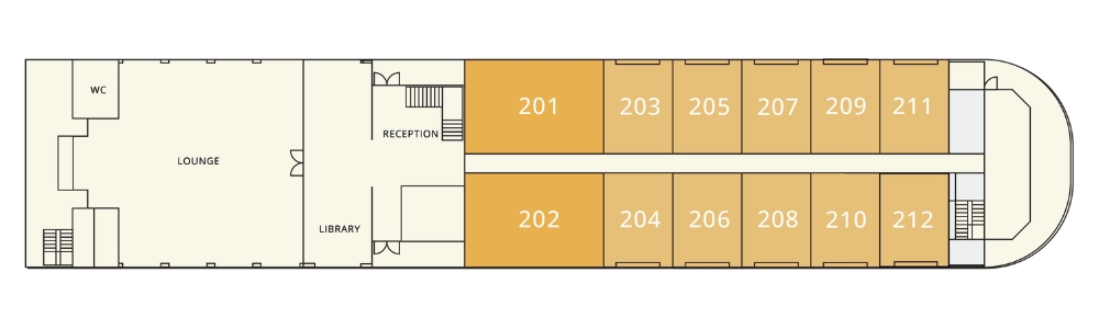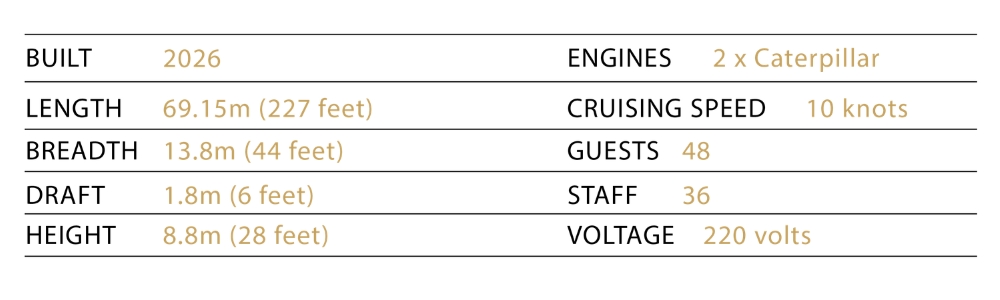 Located forward on the Upper Deck, these two very private suites offer the most luxurious and spacious accommodation on board, measuring 592 square feet (55 square metres) and featuring a 54 square feet (5 square metres) private balcony, where complimentary canapés are served at sundown as part of the Lotus Butler Service